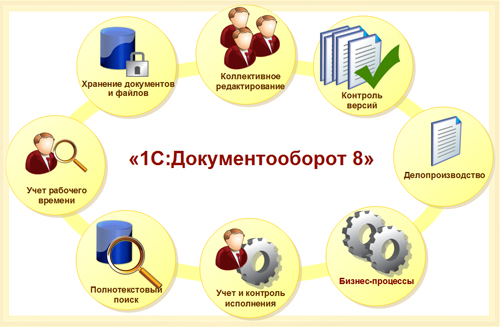 «1С:Документооборот 8» представленный в конце 2009 г., является преемником программного продукта «1С:Архив 3». Решение выполняет задачи автоматизации учета документов, взаимодействия сотрудников, контроля и анализа исполнительской дисциплины. «1С:Документооборот 8» позволяет автоматизировать полный цикл обработки официальных и внутренних документов коммерческих предприятий и бюджетных учреждений с поддержкой как электронного, так и бумажного документооборота; а также обеспечить в организации централизованное безопасное хранение, оперативный доступ, поиск и эффективную работу с официальными и внутренними документами любых типов (офисными документами, текстами, изображениями, аудио- и видеофайлами, документами систем проектирования, архивами, приложениями и т.д.). «1С:Документооборот 8» поддерживает многопользовательскую работу в локальной сети или через интернет с использованием веб-браузеров или тонкого клиента.