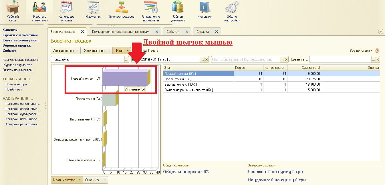 - Управление продажами, создание технологии продажи различных групп товаров, управление стадиями и этапами продажи, механизм подготовки коммерческих предложений, механизм оперативного управления и анализ цикла продаж - "воронка" продаж;