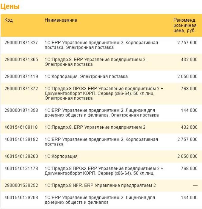 | 1С:Предпр.8. ERP Управление предприятием 2. Электронная поставка | 432 000 |