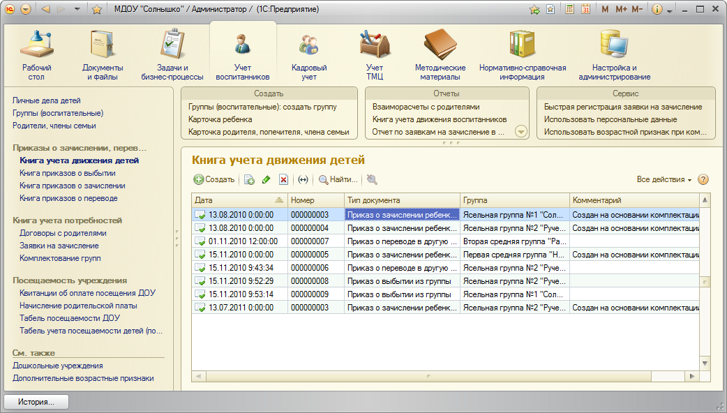 - Учет приказов по воспитанникам