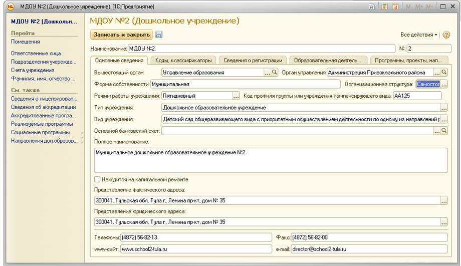 - конфигурации "Дошкольное учреждение".