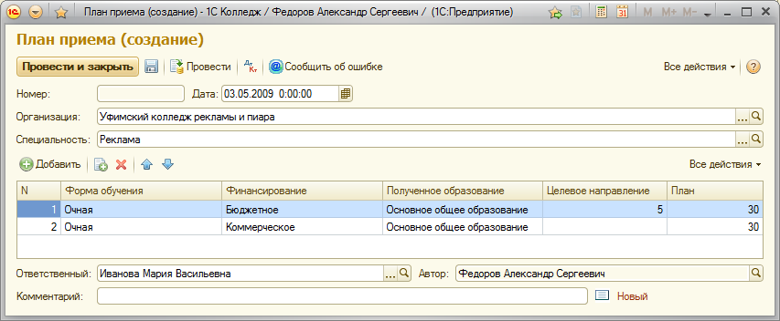 - Планирование потоков, вступительных групп с учетом оплаты обучения, имеющегося образования, специальностей, на которые поданы заявления, и прохождения подготовительных курсов.