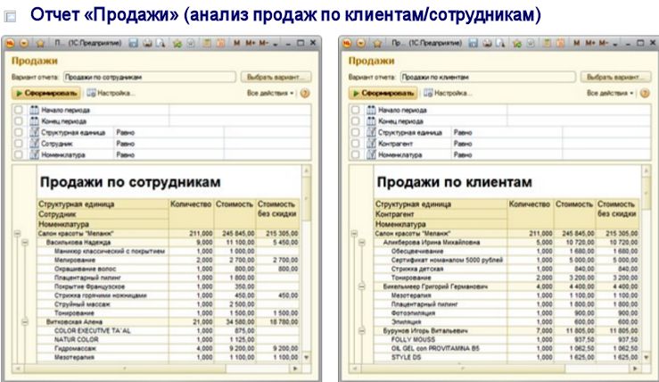- Детальные аналитические отчеты работы салона (товарные отчеты, прибыль по организации, клиентам и мастерам, анализ скидок, и др.).