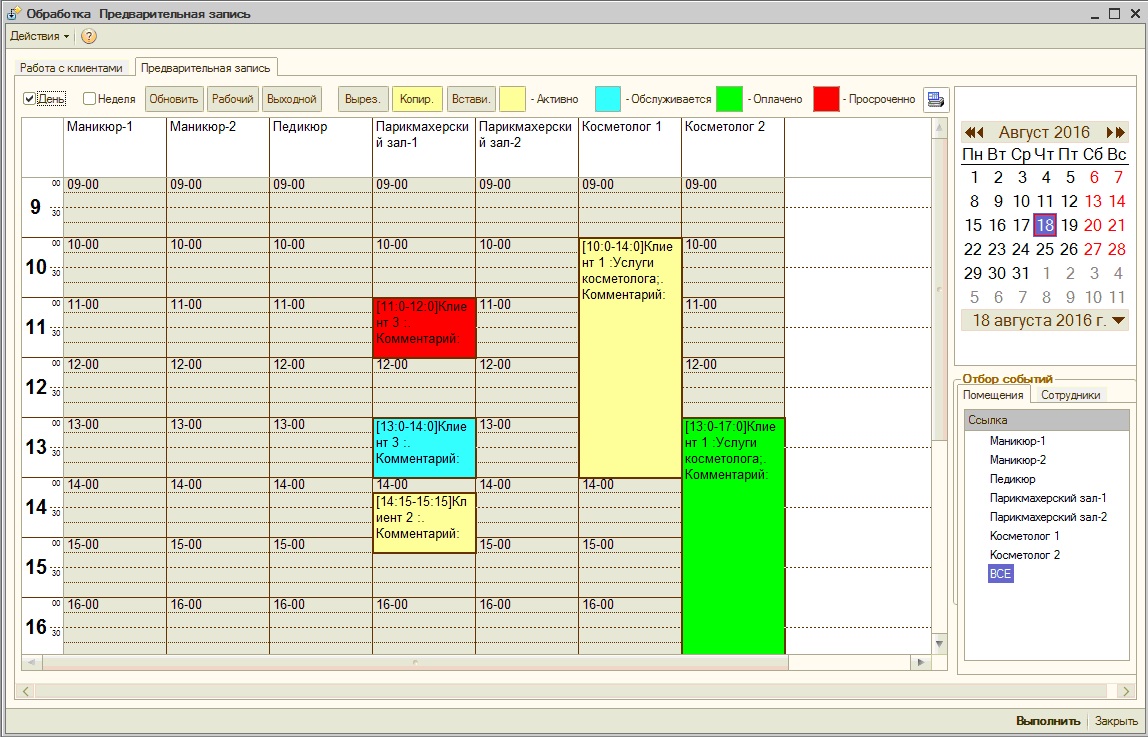 - Детальное ведение клиентской базы (контактная информация, история взаимоотношений, предварительная запись).