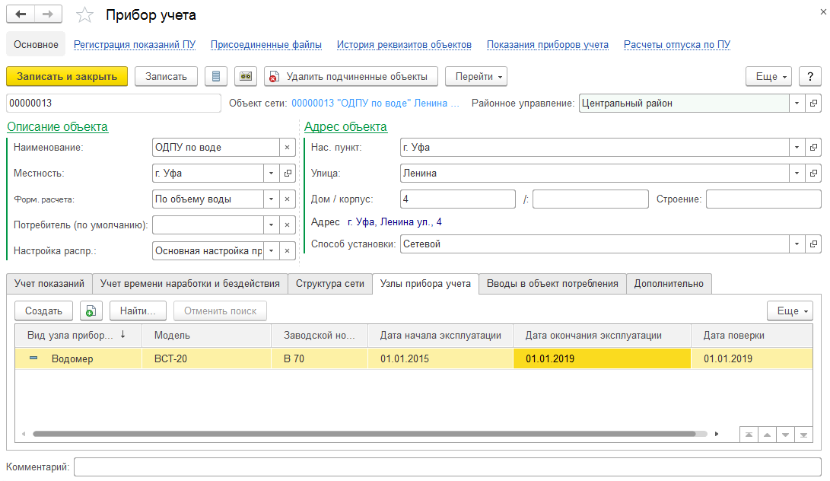 - Учет поверок приборов учета, с раздельным учетом отдельных узлов приборов;