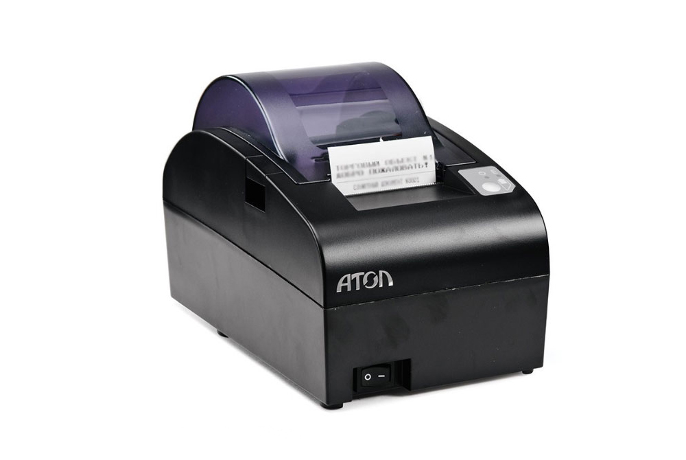 АТОЛ 55Ф — фискальный регистратор, работающий с узким чеком (58 мм) и рассчитанный на средний поток клиентов. Онлайн-касса использует автоматический отрезчик чековой ленты японского производства. Надежный механизм защищает от заклинивания ножа.