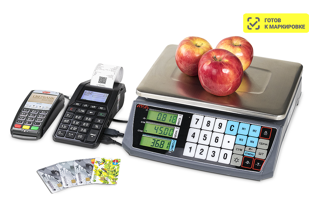 АТОЛ 92Ф имеет два USB-порта. Это позволяет одновременно подключать сканер штрих-кода, банковский пин-пад или электронные весы АТОЛ MARTA, что обеспечивает начальный уровень автоматизации. С банковским пин-падом клиенты могут быстро расплачиваться картой или телефоном. Чтобы подключить эквайринг к ньюджеру, заключите договор и возьмите в аренду пин-пад любого банка.